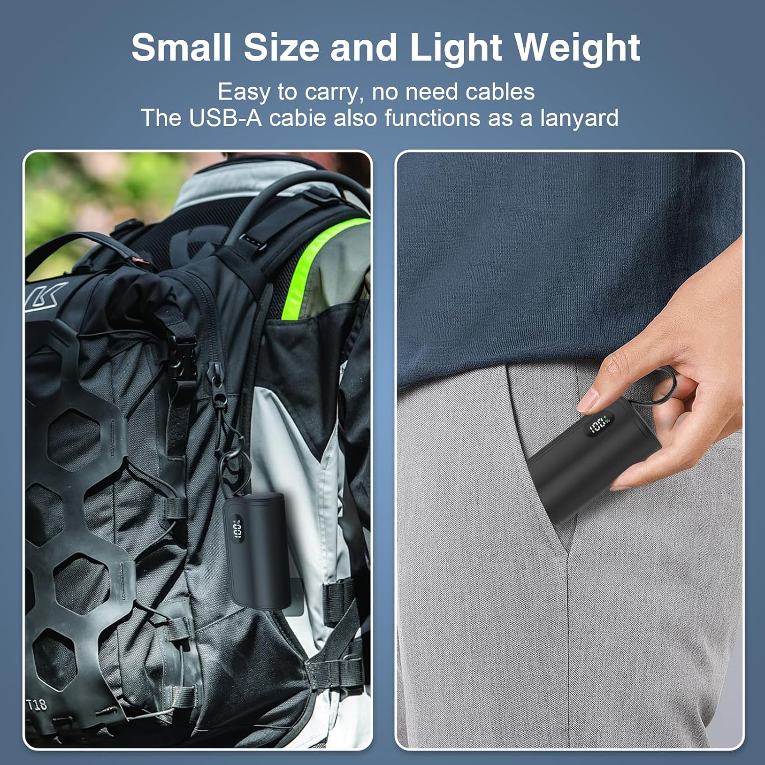 Mini cargador portátil de 5000 mAh, banco de energía de carga rápida ultracompacto, adecuado para todas las series de iPhone y teléfonos con conectores tipo C.